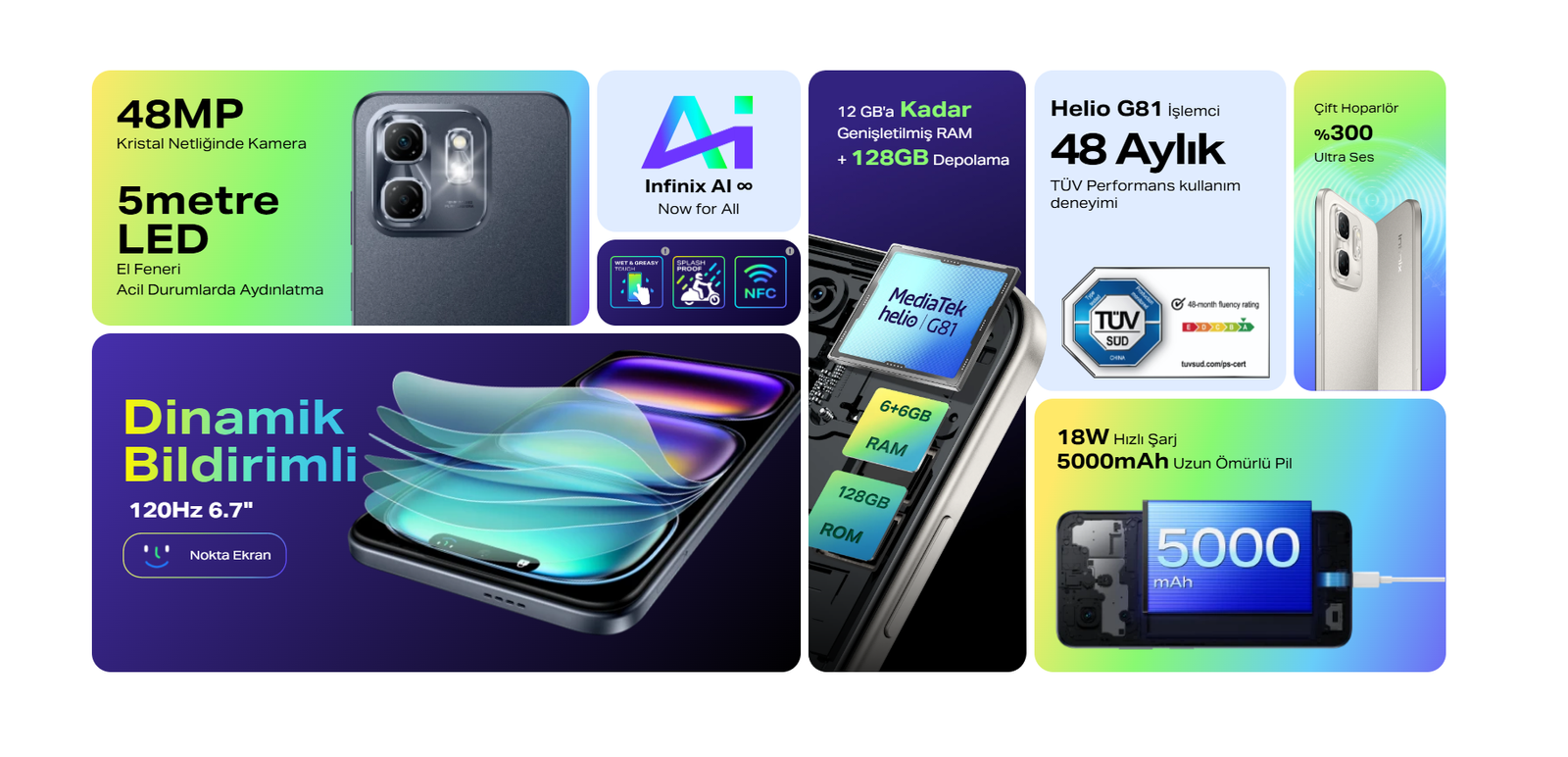 Infinix Hot 50 Pro Plus 256GB 8GB + 8GB Ram Akıllı Cep Telefonu (Türkiye Garantili)